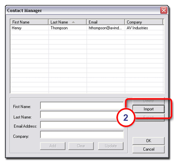 Use the Import button to import contact information that has been exported from another GC file to an .xml file.