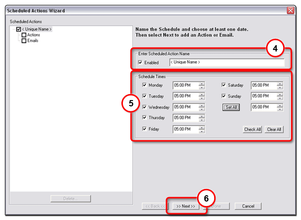 The Scheduled Actions Wizard dialog box opens (see below).