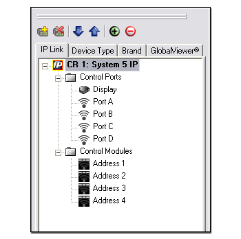 The GC2 Project opens and displays the first network device in the IP Link Tree window (shown at right).