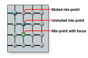 DSP Configurator provides control of the microphone mixer that is used to mix individual microphones to the outputs. Each of the line level inputs is connected to a mix-point for each of the line level outputs. In general, mic mix levels are set relative to the source program material connected to the output and also relative to other microphones. The default setting for mic mix-points is muted at unity gain (0.0 dB). See the Optimizing Audio Levels section for more information. |