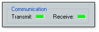 In Live mode only, transmit and receive communication indicators are displayed in the lower right corner of the open workspace. These indicators light green to indicate that information is being transmitted to and received from the device.