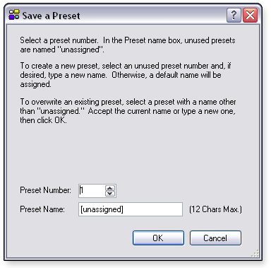In the dialog box, click OK to proceed. The Save a Preset dialog box opens.