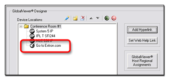 1. In the Device Locations section, click on a device location.  The Add Hyperlink button becomes active.