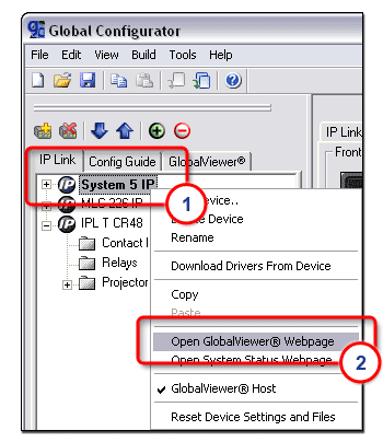 1. In the IP Link Tree window, select a GlobalViewer host device.