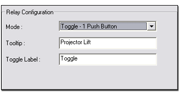 In this configuration there are two distinct buttons created for the GlobalViewer interface, with two separate button labels.  One button provides the relay open condition and the other button provides the relay closed condition.