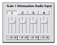 Gain / Attenuation Audio InputThe controls in the Gain / Attenuation Audio Input section set the gain levels for the four audio inputs on the AV switcher. |
