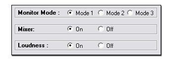LoudnessThe Loudness control boosts low and high frequencies to compensate for the normal decreased hearing ability of the human ear at low volume levels. Use this control to turn the Loudness function on or off. You can select one of the following radio buttons for the Loudness setting: