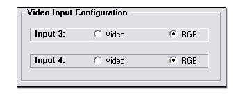 video Adjust the settings in the Video Input Configuration section to identify which type of input is present on ports 3 and 4 of the AV switcher. |