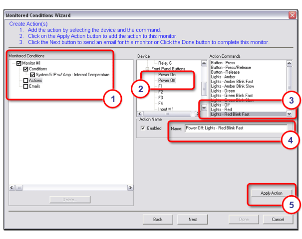 5. Click the Apply Action button.  The new action appears in the Monitored Conditions section.