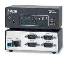 The Extron IPL T S4 is a compact Ethernet control interface with a high performance web server, designed to integrate IP connectivity into A/V systems. The IPL T S4 gives users the ability to remotely and proactively monitor and troubleshoot projectors, flat panel displays, switchers, and other serially controlled products.