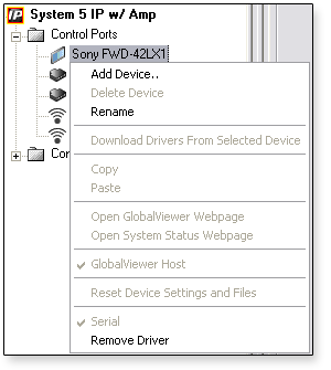 Control Port Context MenuTo open a Control port context menu: