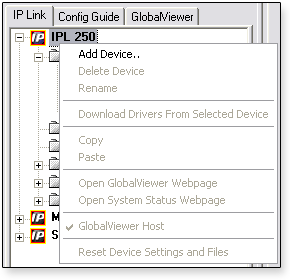 available by right-clicking on one of the following items, in the IP Link