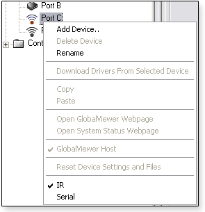 IR Port Context MenuTo open an IR port context menu: