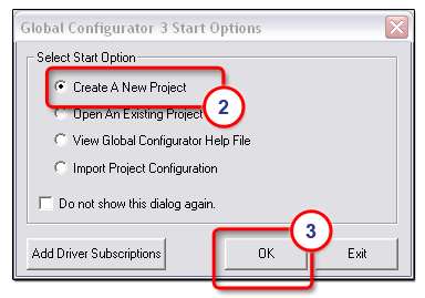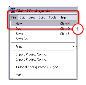 1. From the File menu, select New.  The Global Configurator Start Options dialog box opens.