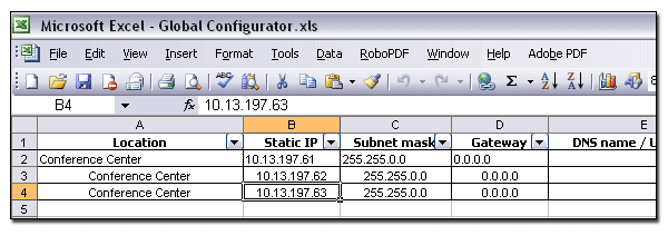 IP Link Device(s) WorksheetUse this option to generate a Microsoft Excel worksheet (example shown below) that contains the following information for each device on your AV network: