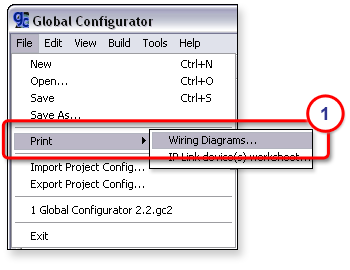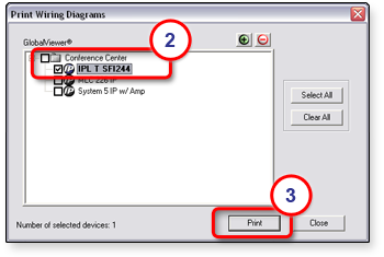 Use the Wiring Diagrams print option to generate a printout that provides details about the selected device, including a diagram of its connection ports. Use the IP