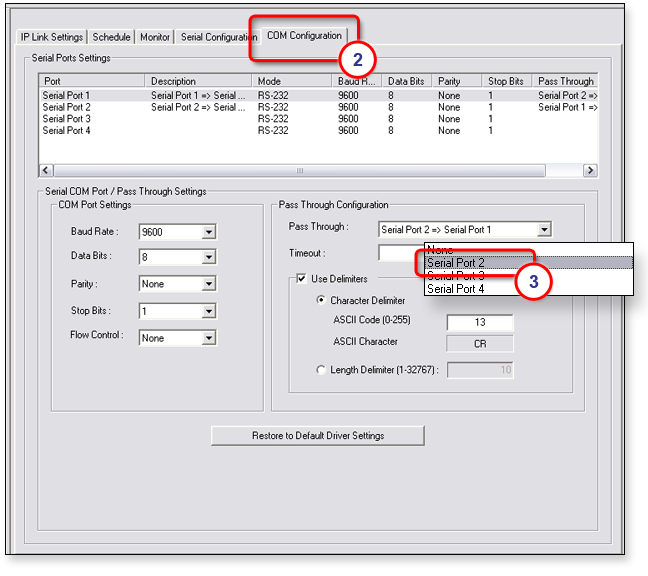 Link The COM Configuration (2) tab: