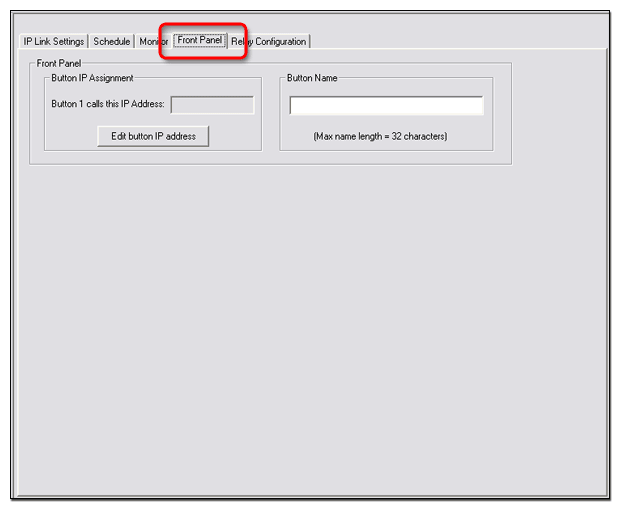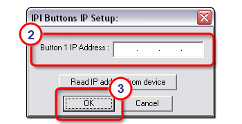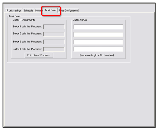 1. In the Button IP Assignment section of the Front Panel tab, click the Edit Button IP address button.  The IPI Buttons IP Setup dialog box opens.