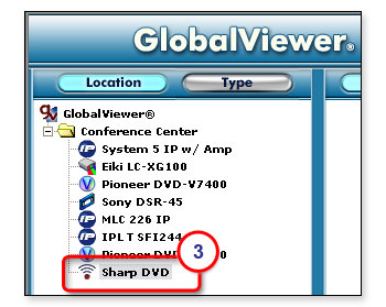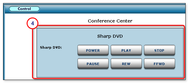 1. Select the desired IR device in the left pane, such as Sharp DVD as shown in the figure on the right.  The buttons for the functions you selected during the configuration are displayed on the Control tab of the GlobalViewer web page (see the image below).