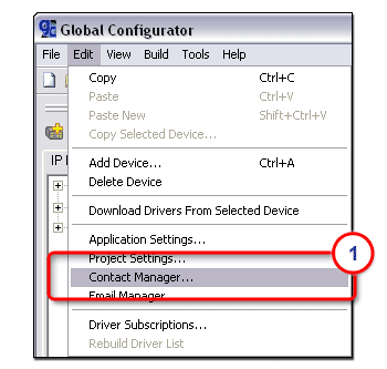 Use the Contact Manager dialog box to enter the name, email address, and company name of the network's contacts. |