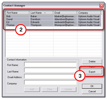 ExportUse the Export button to export contact information to an .xml file. To export contact information: