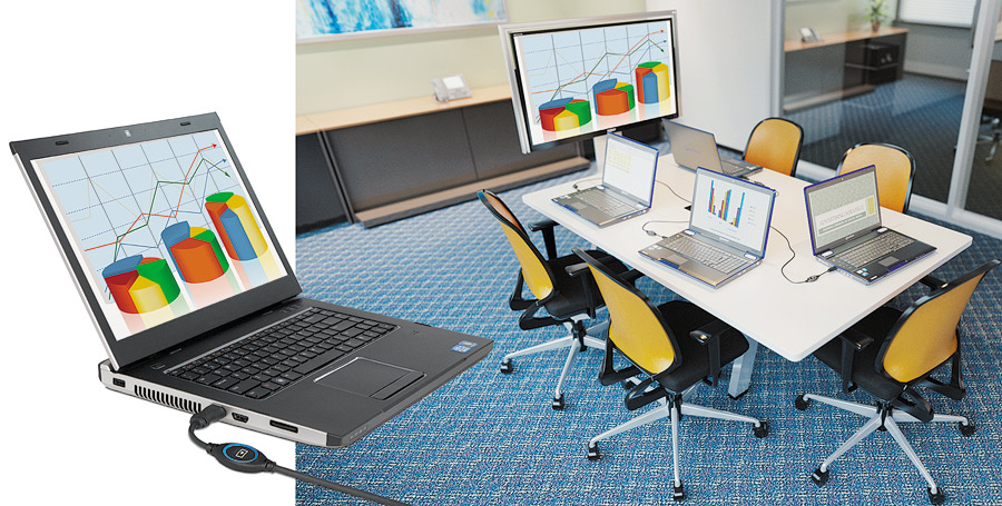The Extron TeamWork® 400 System is a complete, pre-configured collaboration system for four digital sources. The package includes four HDMI Show Me® cables, an SW4 HD 4K four-input HDMI switcher, a system controller, a Cable Cubby® 1202 enclosure, and other necessary system cables. The TeamWork 400 system is pre-configured for ease of installation with virtually any furniture system, new or currently in use. This collaboration system also supports legacy analog computer sources with the optional TeamWork VGA Kit. Optional mounting hardware is available to facilitate different collaboration table or work surface designs. The TeamWork system is ideal for corporate and education applications that require a reliable, easy-to-use collaboration system that adapts to evolving collaboration needs.